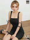 ギャザーがメリハリボディに導く♡ [Angel-R/エンジェルアール] 高級 ブランド タイトミニドレス ノースリーブ スリーブリボン サイドシアー ギャザー アシメデザイン
