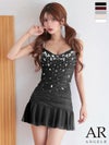 可愛く華やかなお顔周りに♡ [Angel-R/エンジェルアール] 高級 ブランド Aラインミニドレス 谷間 キャミソール スパンコール ビジュー チュール ギャザー 裾フリル
