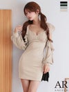 女性らしいボディラインを魅せる♡ [Angel-R/エンジェルアール] 高級 ブランド タイトミニドレス 長袖 谷間 ストレッチ ショルダーカット フリル ビジュー パールチェーン
