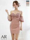 上品さとフェミニンさを両立♡ [Angel-R/エンジェルアール] 高級 ブランド タイトミニドレス 谷間 キャミソール ハートカット パフスリーブ付き ウエストリボン フラワー刺繍
