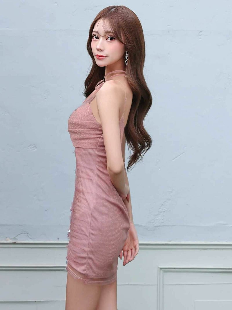 3. [Angel-R/エンジェルアール] 高級 ブランド タイトミニドレス 谷間 キャミソール クロスネック ラメ 背中魅せ フラワー刺繍