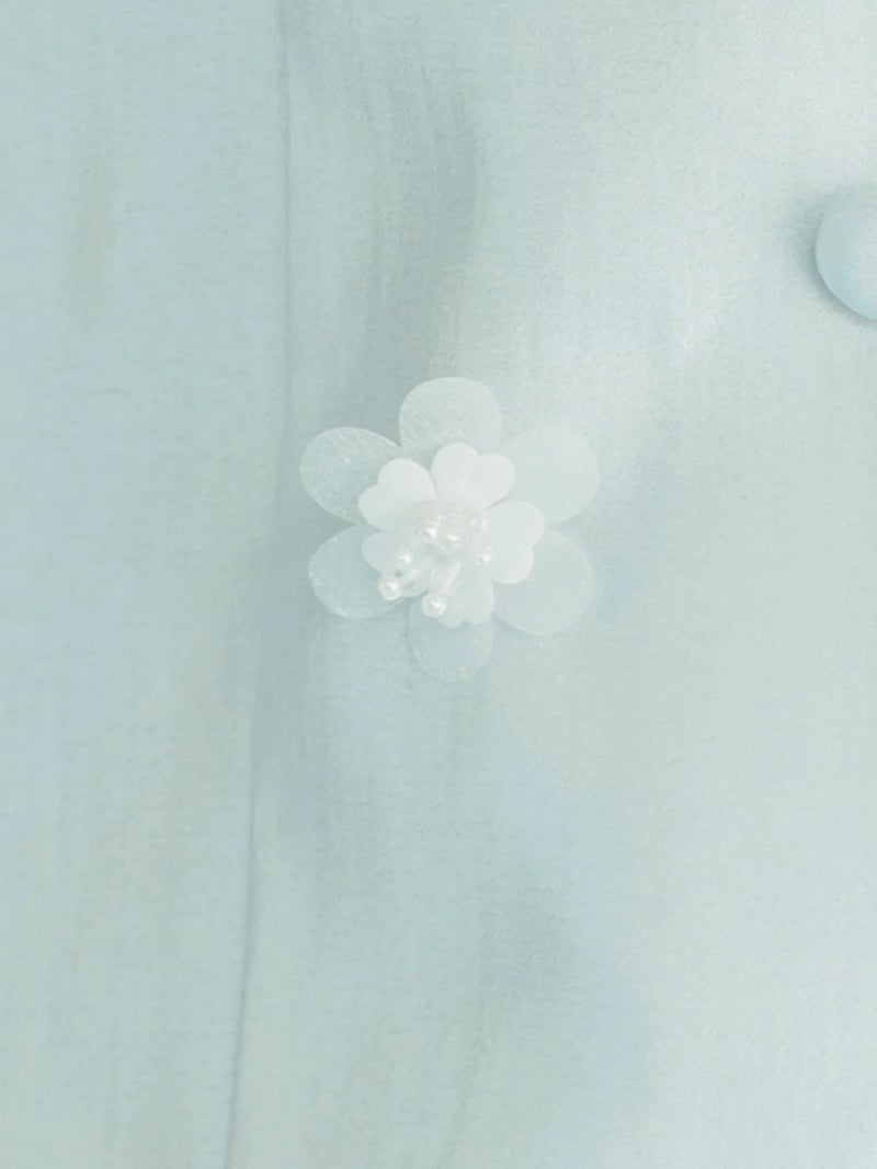 5. [Angel-R/エンジェルアール] 高級 ブランド Aラインミニドレス 谷間 肩出し フラワーモチーフ フロントボタン 裾シフォン