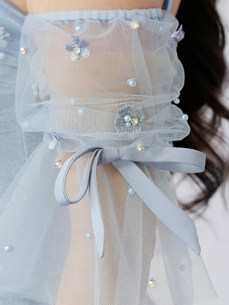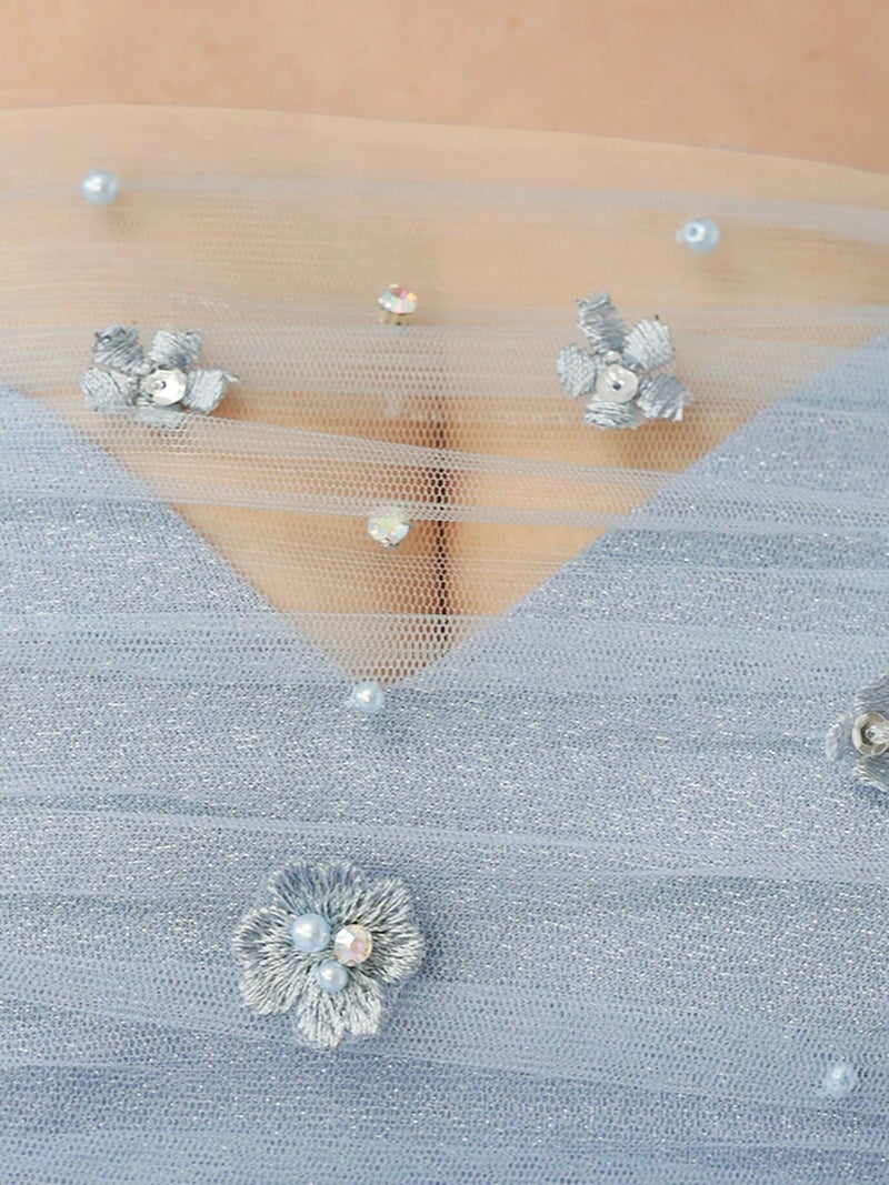 5. [Angel-R/エンジェルアール] 高級 ブランド タイトミニドレス オフショルダー 肩出し 2way バストシースルー フラワー刺繍 パール