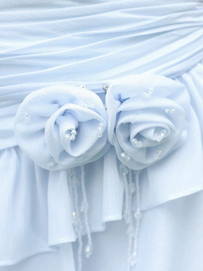 3. [Angel-R/エンジェルアール] 高級 ブランド フレアミニドレス 谷間 クロスホルターネック ハートカット ビジュー ウエストカット 裾フリル ローズモチーフ