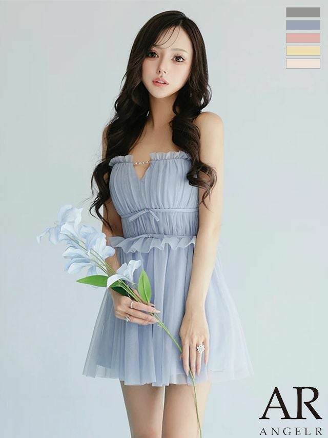 ふんわり女性らしさを纏う♡ [Angel-R/エンジェルアール] 高級 ブランド フレアミニドレス ビジューキャミソール チュール リボン バストカット