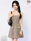 3. [Angel-R/エンジェルアール] 高級 ブランド Aラインミニドレス ベア キャミソール 2way ハートカット ダブルボタン フェイクポケット スリーブ付き