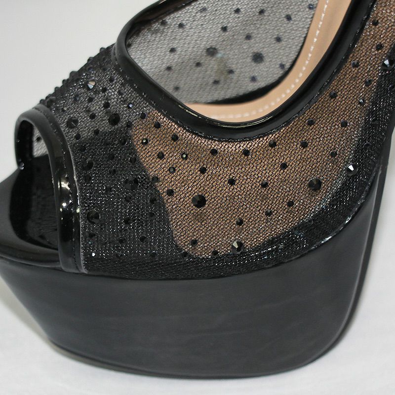 キラキラのビジューが煌めく☆ [Angel-R/エンジェルアール] 高級ラメビジューシースルーオープントゥキラキラハイヒール