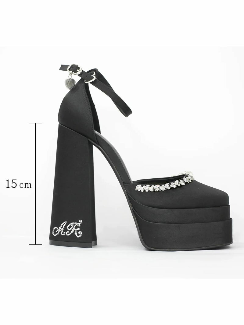 15cmヒール☆足元から特別感を演出☆ [Angel-R/エンジェルアール] 高級キラキラストーンアンクルハートチャーム付き厚底ハイヒール