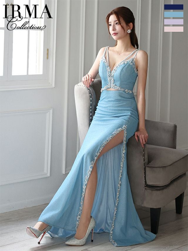 煌めくビジューが美しさを格上げ♡ [IRMA/イルマ] 高級 バースデー ビジュー ノースリーブ ウエストカット 背中魅せ スリット タイトロングドレス