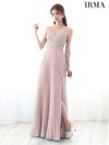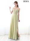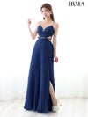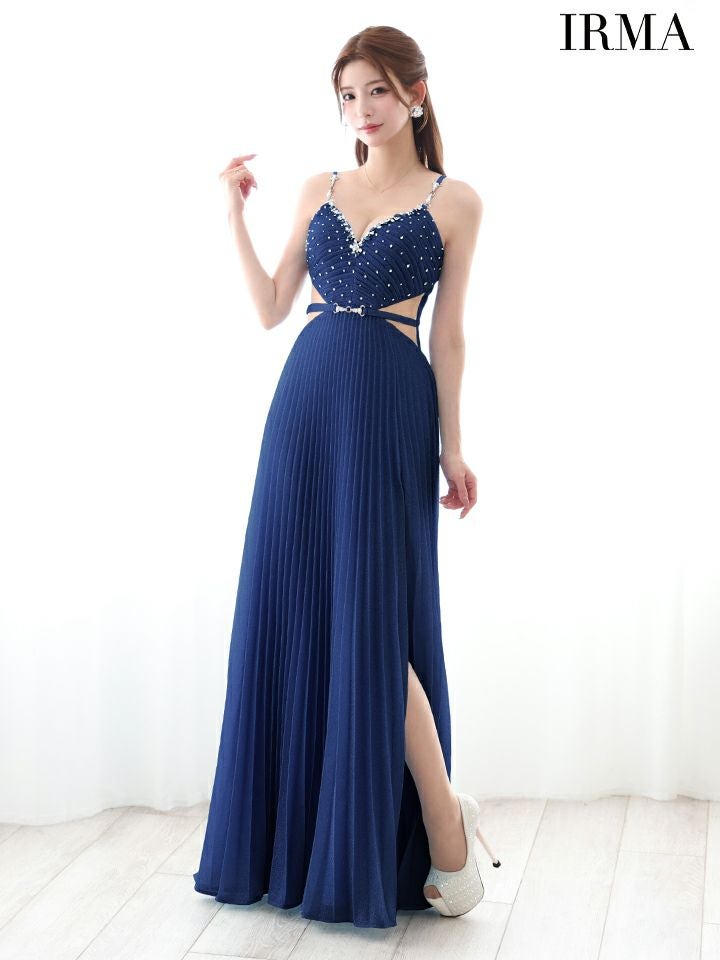 優雅な美シルエットを演出♡ [IRMA/イルマ] 高級 バースデー ビジューキャミソール 谷間魅せ ウエストベルト くびれ スリット プリーツ Aラインロングドレス