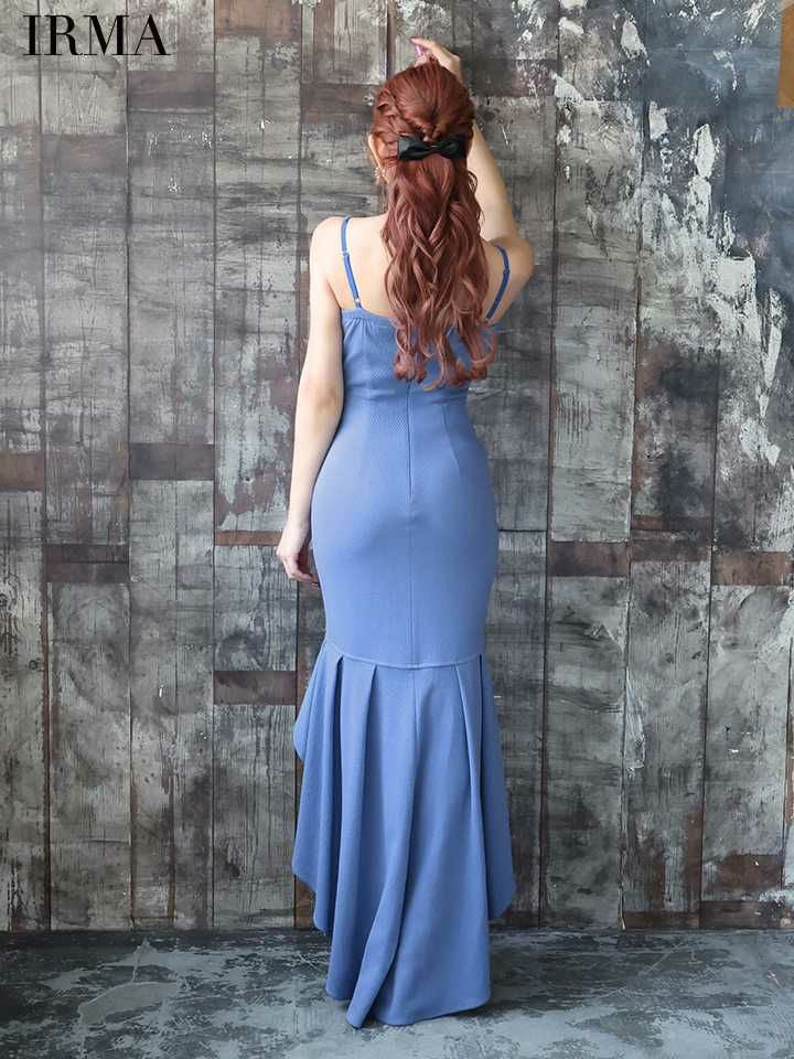 5. [IRMA/イルマ] 高級 ブランド ロングテールドレス 谷間 キャミソール ジップ くびれ透け マーメイド ワンカラー