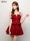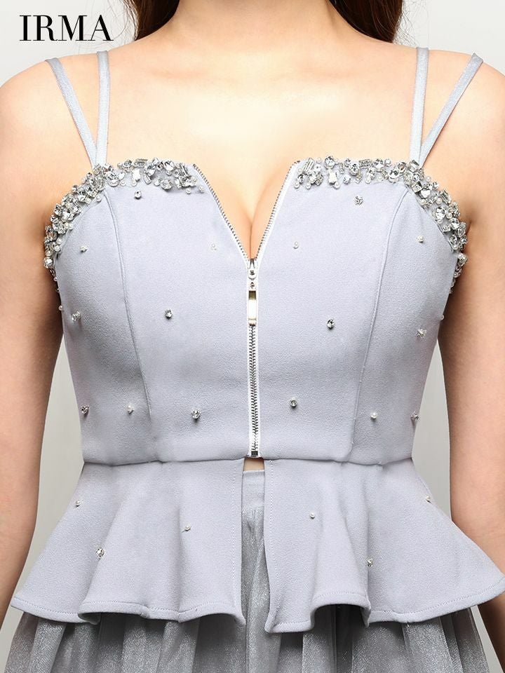 可愛くスタイルアップを叶える♡ [IRMA/イルマ] 高級 ブランド Aラインミニドレス 谷間 キャミソール セットアップ ペプラム ジップ ビジュー シフォン