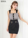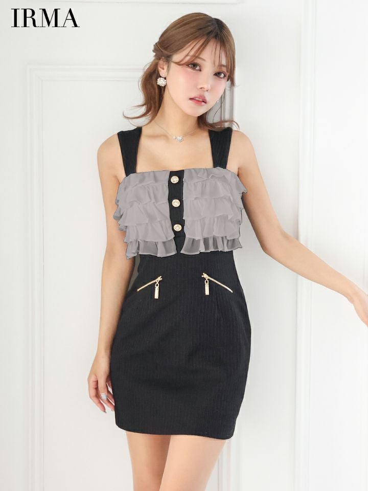 大人可愛いデザインがポイント☆ [IRMA/イルマ] 高級 ノースリーブ ジップ シフォンフリル 柄織りニット ゴールドボタン タイトミニドレス