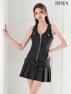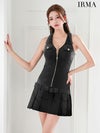 4. ジップデザイン高級ミニドレス