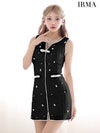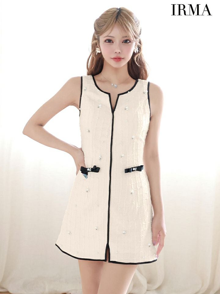 上品な可愛さ溢れる♡ [IRMA/イルマ] 高級 リボンブローチ付き ノースリーブ パール パイピング ニット タイトミニドレス
