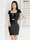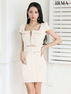 ウエストカットでsexyさをプラス♡ [IRMA/イルマ] 高級 半袖 ラメツイード スクエアネック ジップ ウエストカット タイトミニドレス