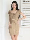 4. [IRMA/イルマ] 高級 半袖 ラメツイード スクエアネック ジップ ウエストカット タイトミニドレス