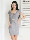 6. [IRMA/イルマ] 高級 半袖 ラメツイード スクエアネック ジップ ウエストカット タイトミニドレス