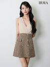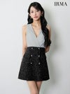 5. [IRMA/イルマ] 高級 ブランド Aラインミニドレス 谷間 ノースリーブ シフォン カシュクール ツイード切替 ダブルボタン