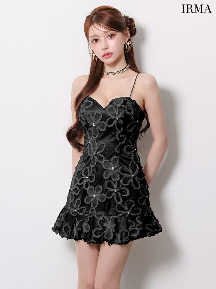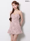 花柄レースが女の子らしさを格上げ♡ [IRMA/イルマ] 高級 ブランド Aラインミニドレス 谷間 キャミソール 花柄レース プリーツ