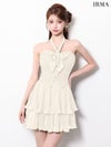 大人の可愛さと色気を両立♡ [IRMA/イルマ] 高級 ブランド Aラインミニドレス 谷間 セットアップ 2way ホルターネック ベア リボン ツイード シフォン