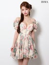 5. 予約商品【3月中旬入荷予定】[IRMA/イルマ] 高級 ブランド Aラインミニドレス 谷間 オフショルダー 半袖 パフスリーブ 2way フラワー シフォン