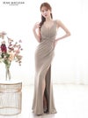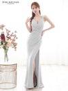 大人シンプルなワンカラー☆ [JEANMACLEAN/ジャンマクレーン] 高級 ノースリーブ ラメニット スリット シンプル ワンカラー タイトロングドレス