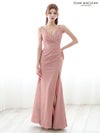 3. [JEANMACLEAN/ジャンマクレーン] 高級 ノースリーブ ワンカラー ラメニット 谷間魅せ タックデザイン スリット シンプル タイトロングドレス