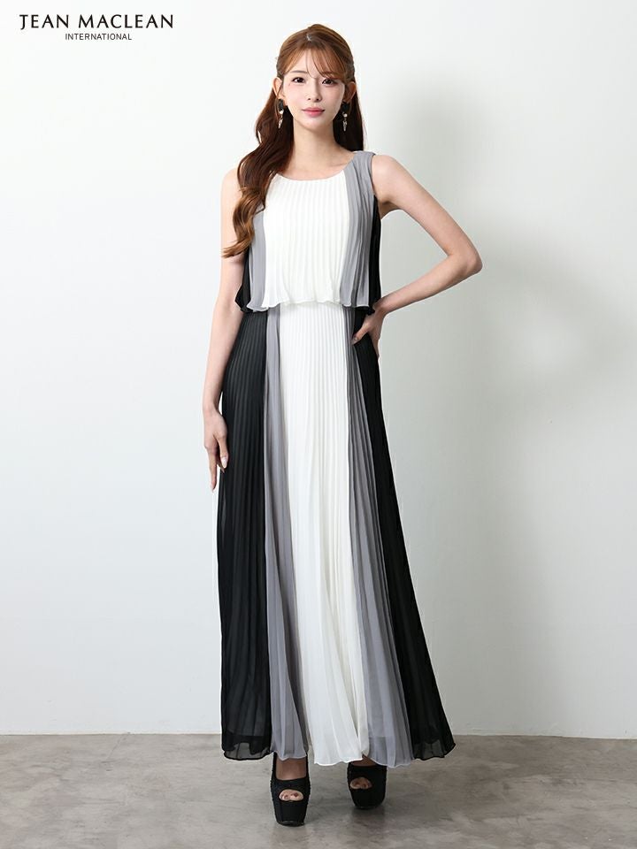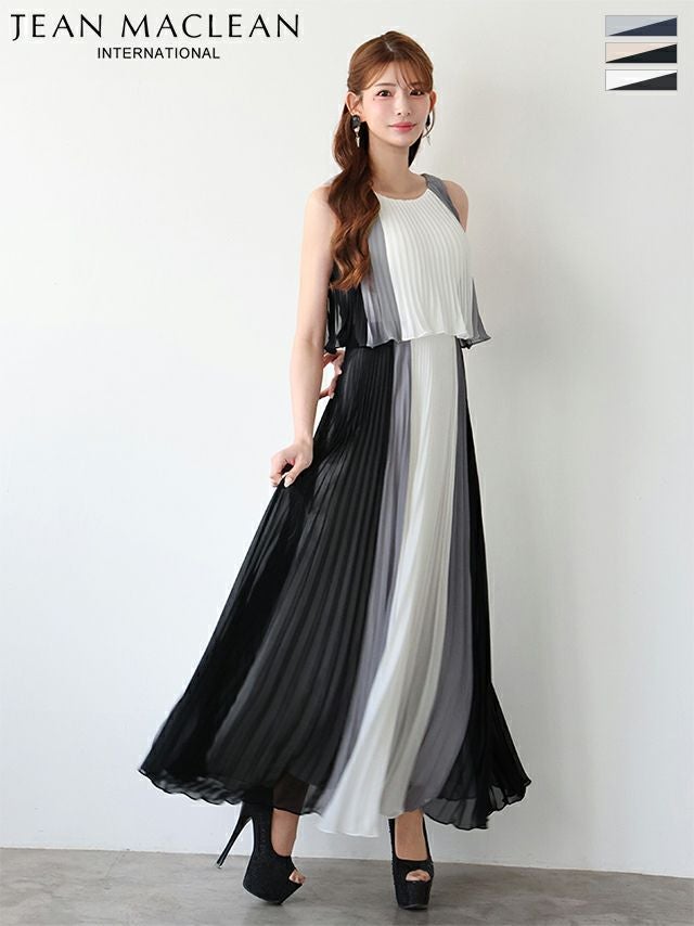 4. [JEANMACLEAN/ジャンマクレーン] 高級 ブランド ワンピース Aラインロングドレス ノースリーブ プリーツ シフォン 大人