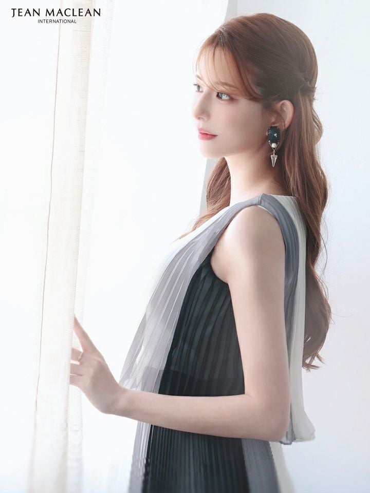 動いた時も美しいシルエットに♡ [JEANMACLEAN/ジャンマクレーン] 高級 ブランド ワンピース Aラインロングドレス ノースリーブ プリーツ シフォン 大人