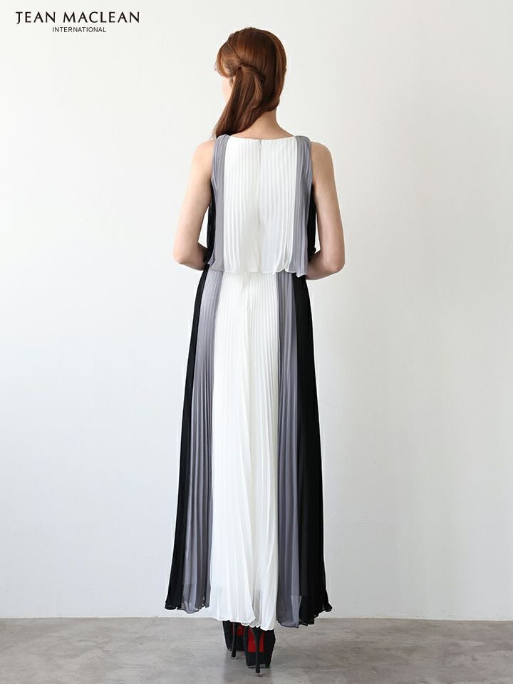 3. [JEANMACLEAN/ジャンマクレーン] 高級 ブランド ワンピース Aラインロングドレス ノースリーブ プリーツ シフォン 大人