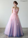 3. [JEANMACLEAN/ジャンマクレーン] 高級 ブランド バースデー Aラインロングドレス 谷間 オフショルダー ハートカット 立体フラワー グラデーション チュール