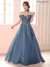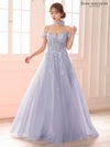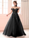 3. [JEANMACLEAN/ジャンマクレーン] 高級 ブランド バースデー Aラインロングドレス 谷間 オフショルダー スパンコール刺繍 シアーコルセット風 チュール チョーカー付き