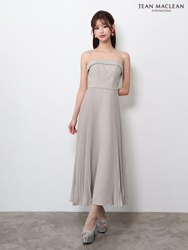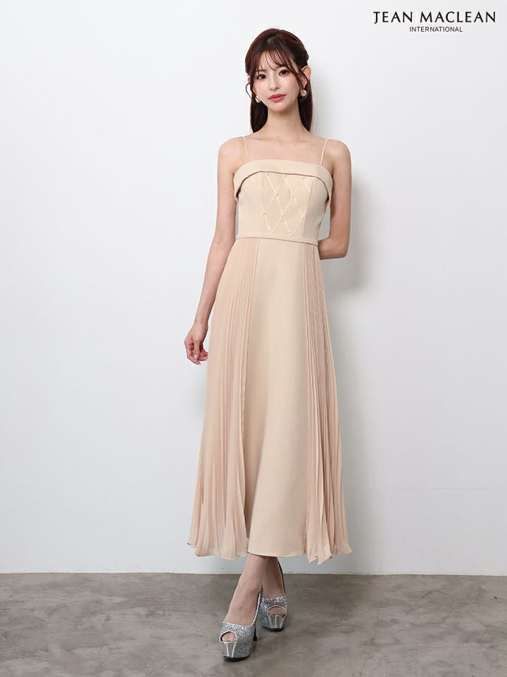ふんわりスカートが女性らしさを高める♡ [JEANMACLEAN/ジャンマクレーン] 高級 ブランド ワンピース Aラインロングドレス キャミソール シフォン プリーツ切替 大人