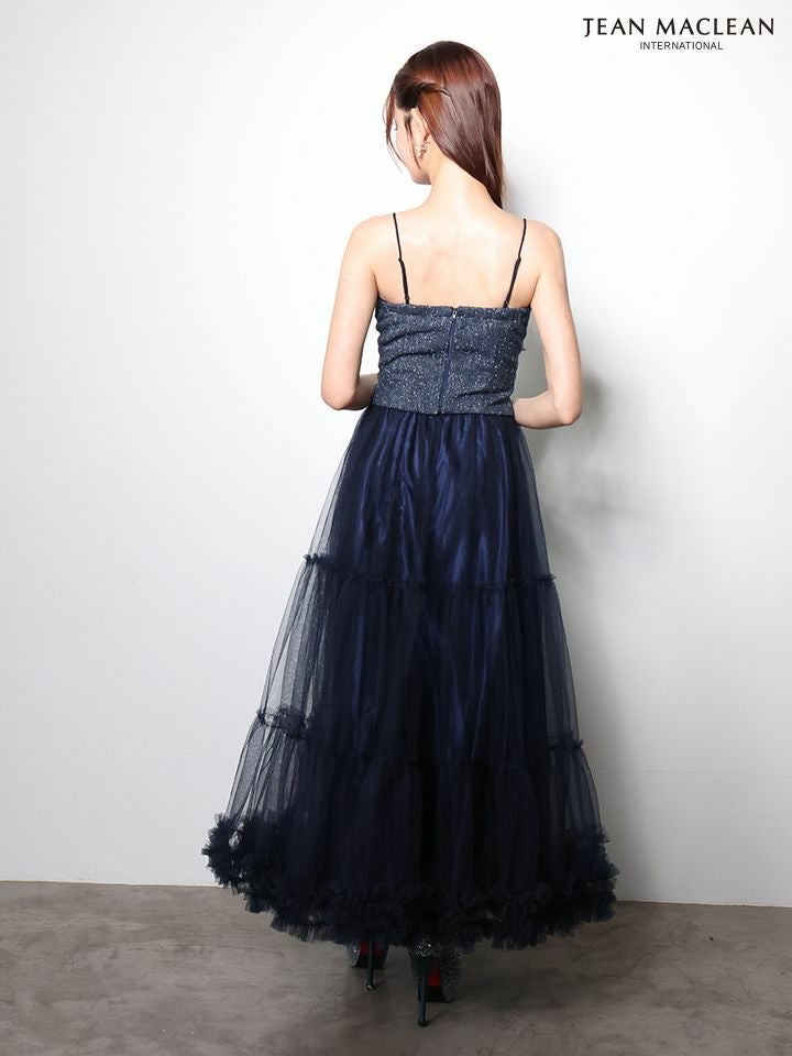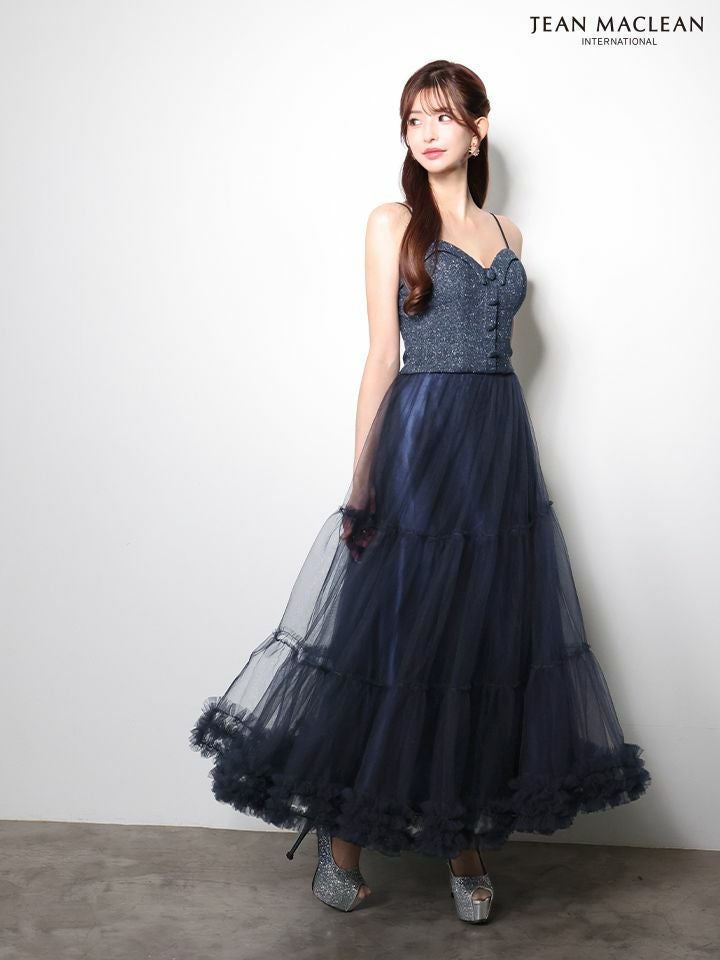 ボリュームのあるスカートで華やかに♡ [JEANMACLEAN/ジャンマクレーン] 高級 ブランド Aラインロングドレス キャミソール セットアップ ツイード ハートカット フロントボタン シフォンスカート (らむ着用)