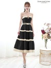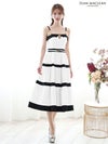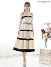 着心地抜群でキュートな一着☆ [JEANMACLEAN/ジャンマクレーン] 高級 キャミソール ウエストベルト バストカット 柄織りニット バイカラー Aラインロングドレス