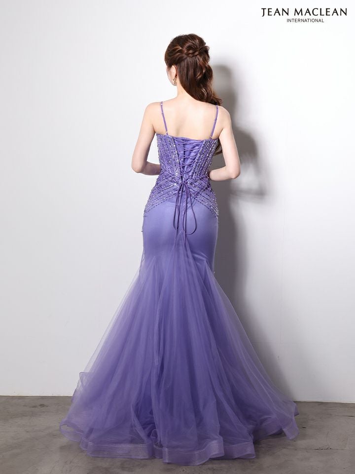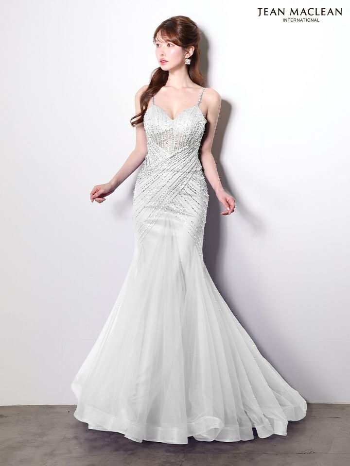 ゴージャスで美しいボディラインをメイク♡ 予約商品【3月中旬入荷予定】[JEANMACLEAN/ジャンマクレーン] 高級 ブランド バースデー マーメイドロングドレス 谷間 キャミソール ハートカット スパンコール チュール