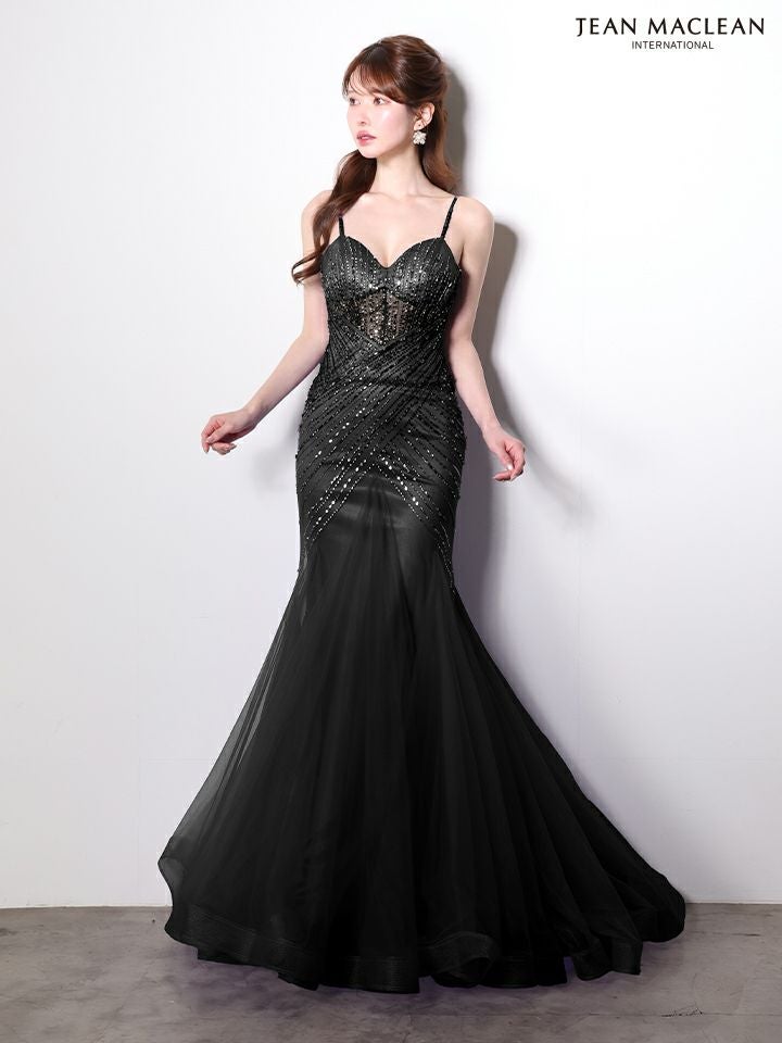 5. 予約商品【3月中旬入荷予定】[JEANMACLEAN/ジャンマクレーン] 高級 ブランド バースデー マーメイドロングドレス 谷間 キャミソール ハートカット スパンコール チュール