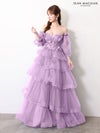 4. 予約商品【4月下旬入荷予定】[JEANMACLEAN/ジャンマクレーン] 高級 ブランド バースデー Aラインロングドレス 谷間 パフスリーブ付き ベア 2way 3Dフラワー スパンコール ティアード フリル