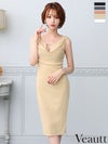 美脚魅せでセクシーに☆ [Veautt/ヴュート] 高級 ノースリーブ サイドジップ ゴールドチャーム シンプル ワンカラー バストカット ラメ 谷間魅せ ファスナースリット タイト 膝丈ドレス