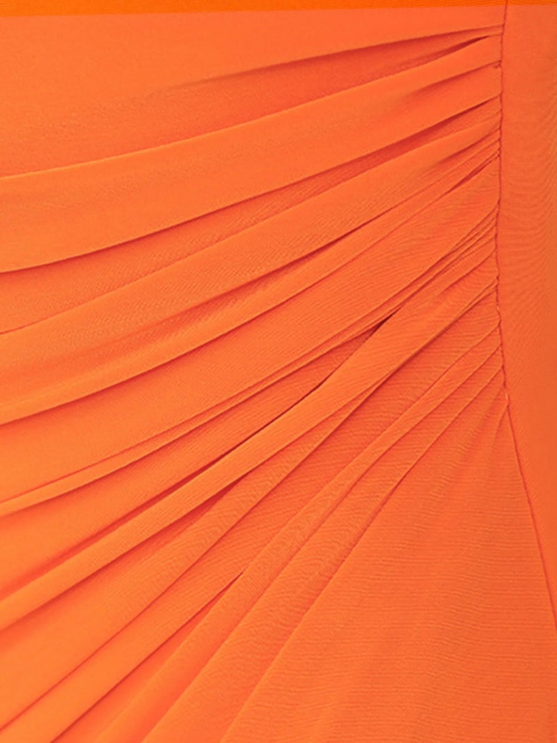 4. [Veautt/ヴュート] 高級 バストカット チェーン ワンショルダー ギャザー ラップ風 アシメスリット タイト 膝丈ドレス