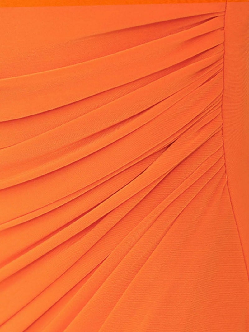 ヘルシーな肌魅せで魅了する♡ [Veautt/ヴュート] 高級 バストカット チェーン ワンショルダー ギャザー ラップ風 アシメスリット タイト 膝丈ドレス (ゆんころ着用)