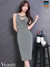 贅沢なドレープデザインがエレガント♡ [Veautt/ヴュート] 高級 ノースリーブ ドレープ バストカット チェーン ファスナースリット タイト 膝丈ドレス