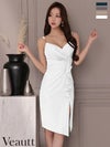 身に纏うだけで美しいボディラインに♡ [Veautt/ヴュート] 高級 ブランド タイト膝丈ドレス キャミソール チェーン 谷間魅せ タックデザイン フリル スリット (ゆんころ着用)