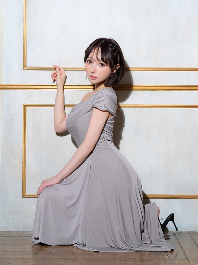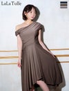 5. [Veautt/ヴュート] 高級 ブランド Aライン 膝丈ドレス ワンショルダー アシンメトリー 大人 ドレープ (せな着用)
