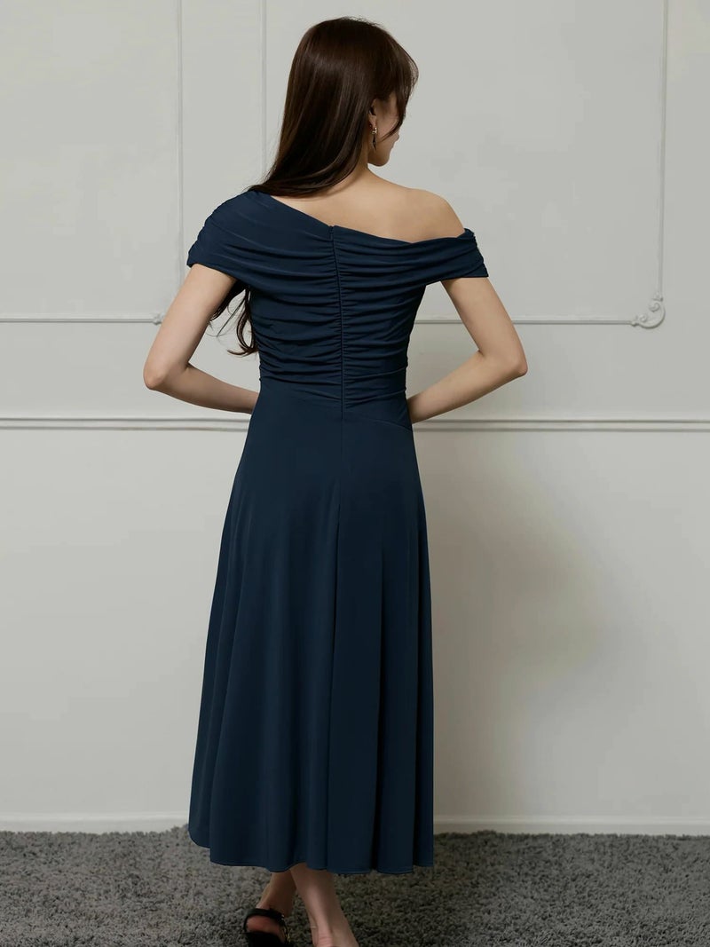 エレガントな大人女性に♡ [Veautt/ヴュート] 高級 ブランド Aライン 膝丈ドレス ワンショルダー アシンメトリー 大人 ドレープ (せな着用)