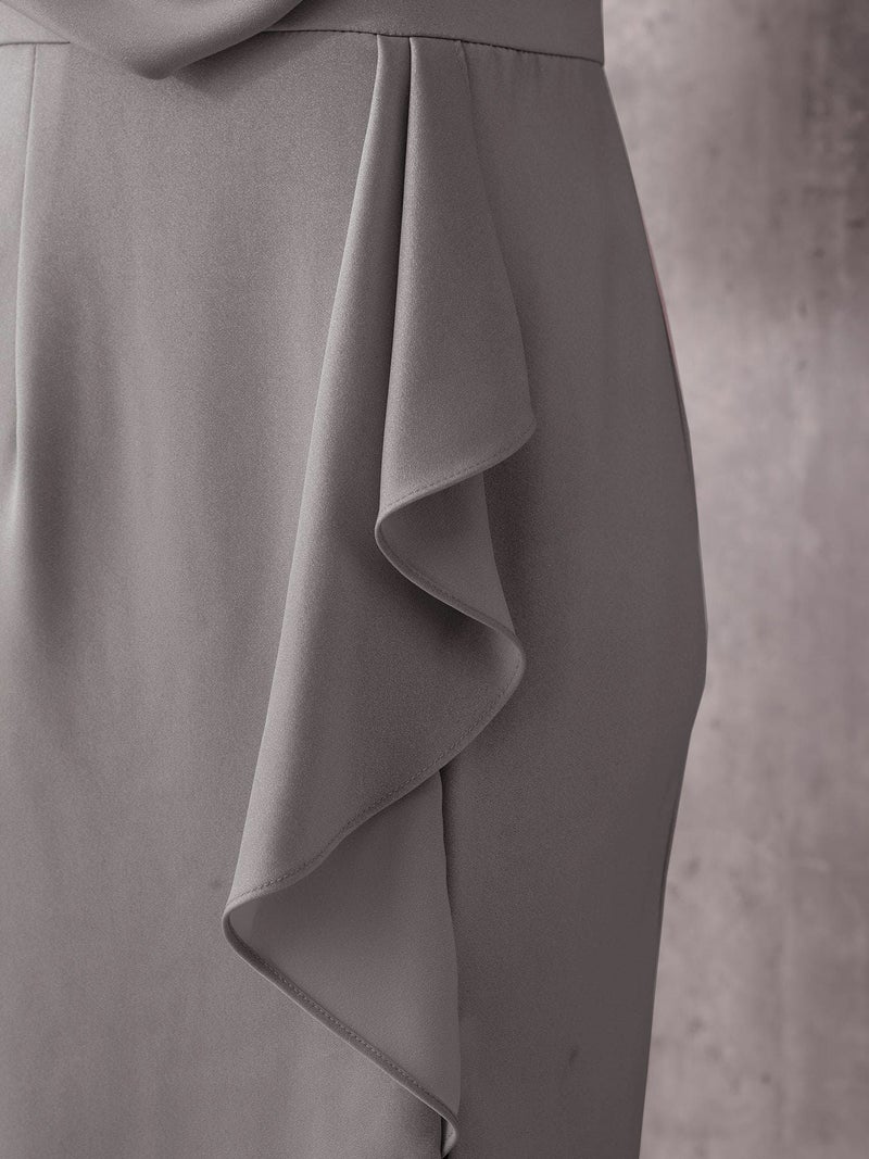 縦フリルでスタイルアップを叶える♡ [Veautt/ヴュート] 高級 ブランド タイト膝丈ドレス ノースリーブ 谷間 カシュクール風 フリル スリット ワンカラー