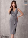 5. [Veautt/ヴュート] 高級 ブランド タイト膝丈ドレス ノースリーブ 谷間 カシュクール風 フリル スリット ワンカラー