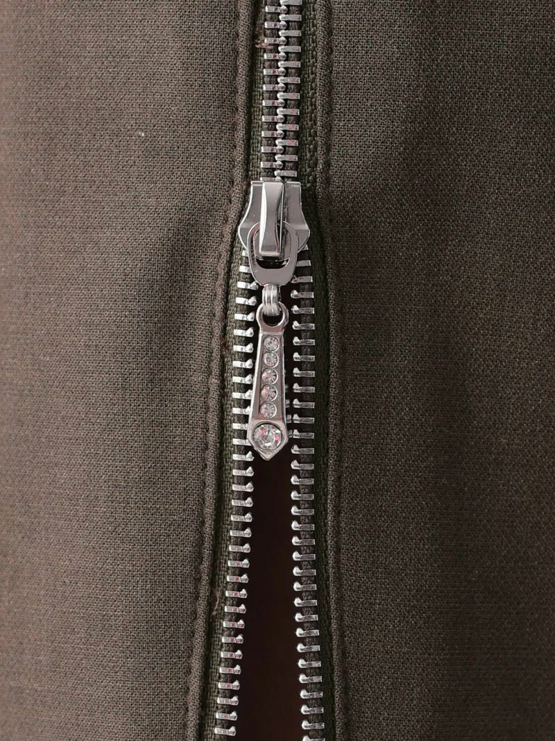 3. [Veautt/ヴュート] 高級 ブランド タイト膝丈ドレス 谷間 ノースリーブ バストチェーン ウエストリボン バイカラー ジップスリット