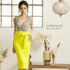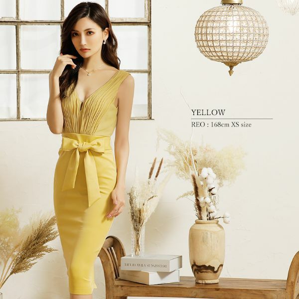 5. [Veautt/ヴュート] 高級ギャザーVネックノースリーブウエストリボン膝丈タイトドレス